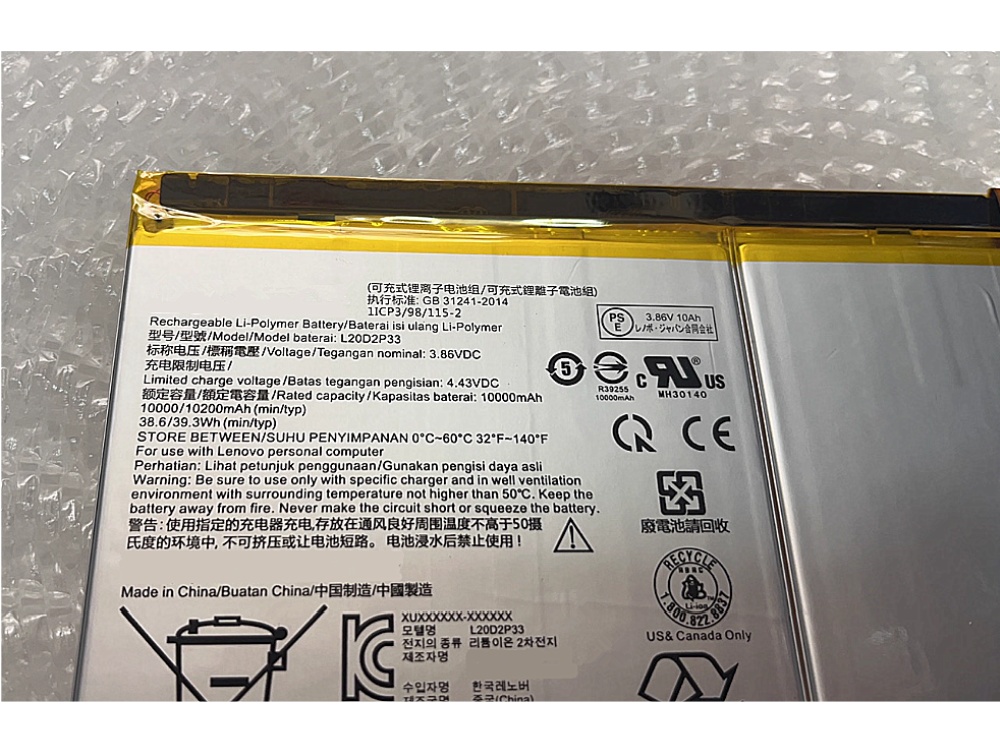 LENOVO L20D2P33 タブレット用バッテリー 商品説明